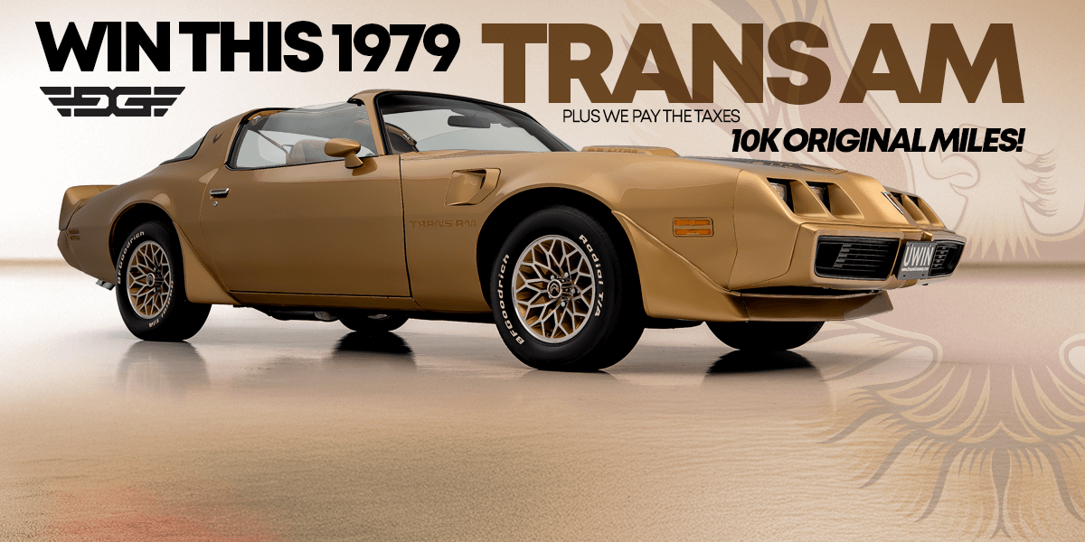 Our newest grand prize is a remarkably preserved 1979 Pontiac Trans Am survivor showing just 10,000 documented original miles. This isn’t a restoration or a re-creation. It’s an authentic, low-mile Trans Am from the height of Pontiac’s late-’70s performance era.
