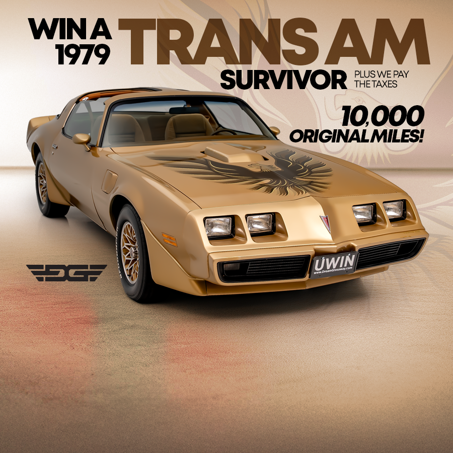 Your chance to win this 10,000-mile 1979 Pontiac Trans Am survivor is short, exclusive, and once-in-a-lifetime. And if you win, we’ll pay the federal prize taxes.